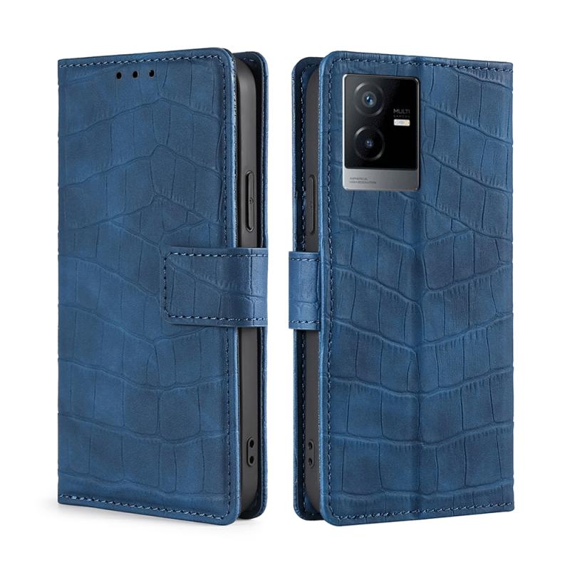 For vivo T2x 5G/Y73t/iQOO Z6x Skin Feel Crocodile Magnetic Clasp Leather Phone Case(Blue)