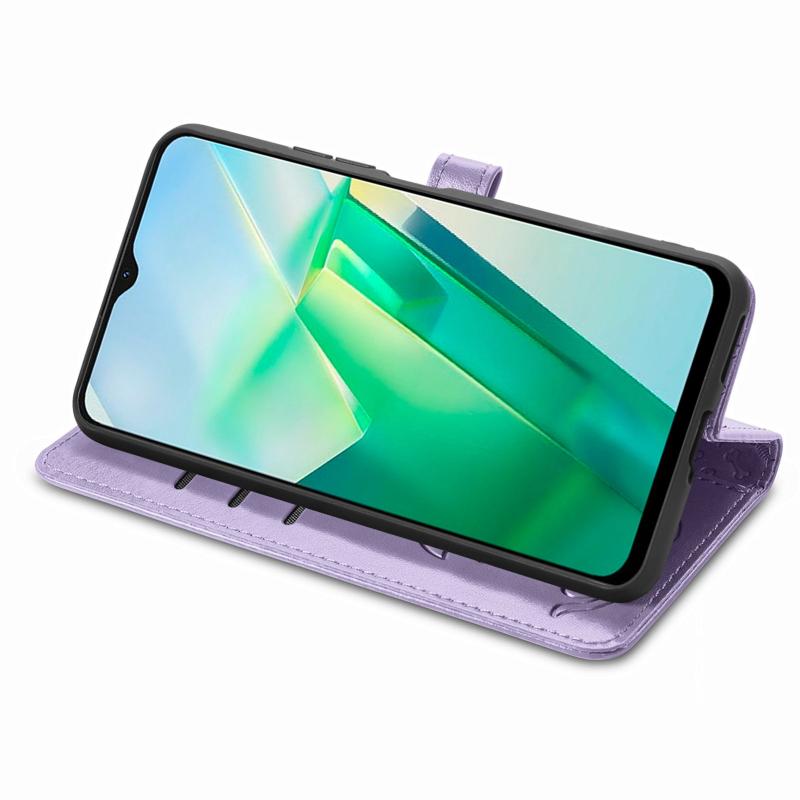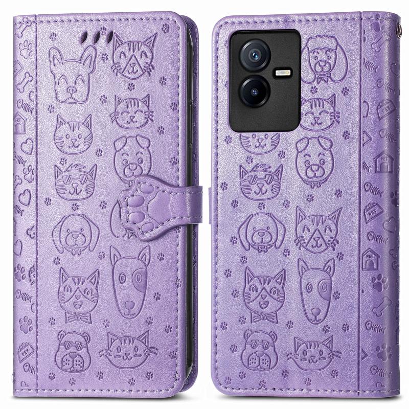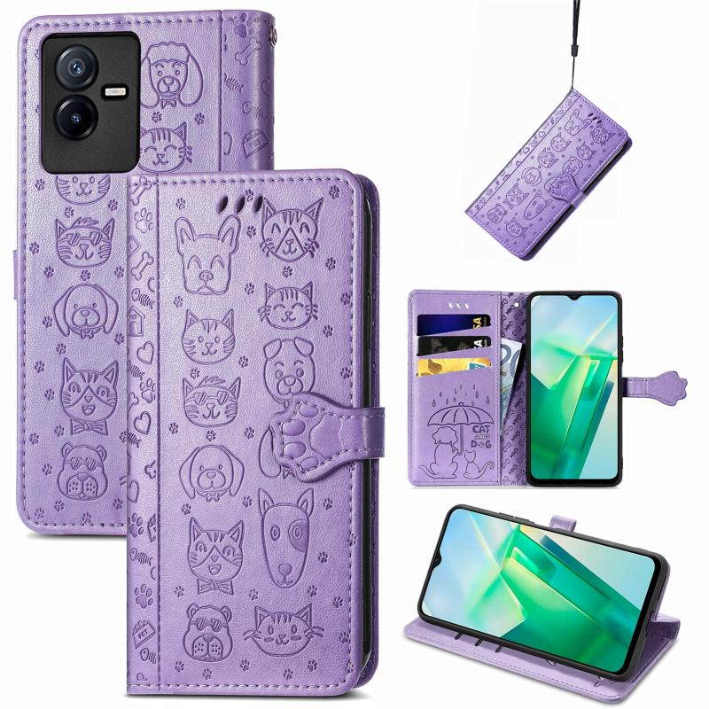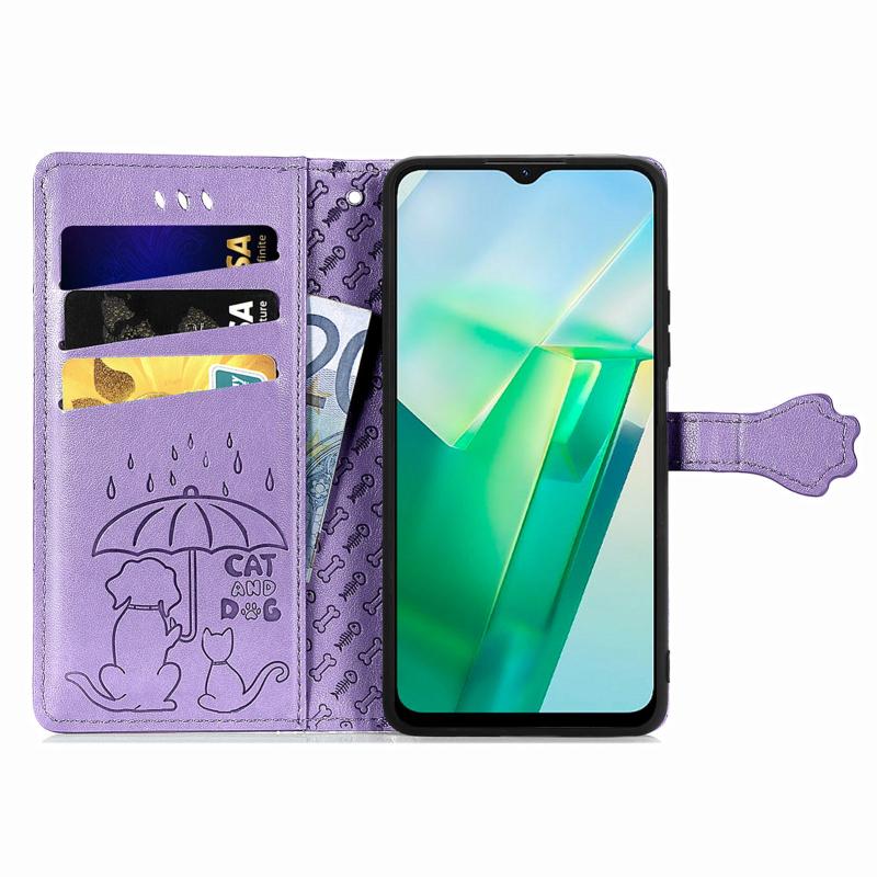 For vivo T2X Cute Cat and Dog Embossed Leather Phone Case(Purple)