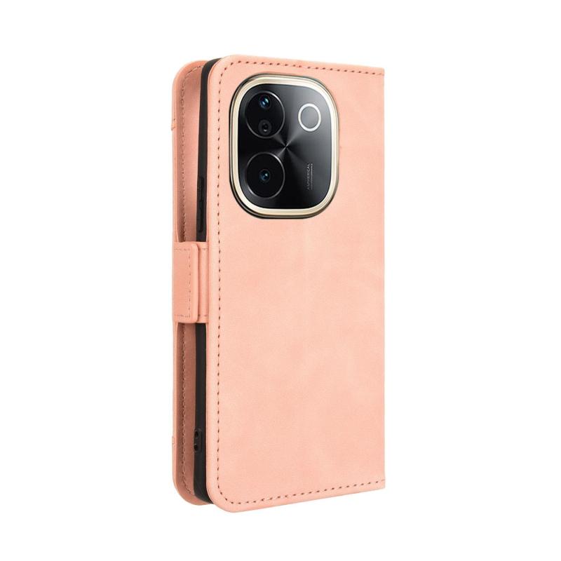 Θήκη τηλεφώνου από δέρμα με υφή μοσχαριού και θήκες καρτών για vivo T3 Pro 5G / iQOO Z9S Pro 5G (Ροζ)