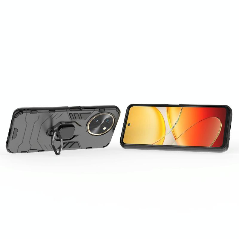 For vivo T3X 5G Shockproof PC + TPU Holder Phone Case(Black)