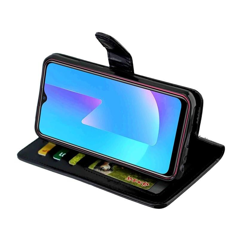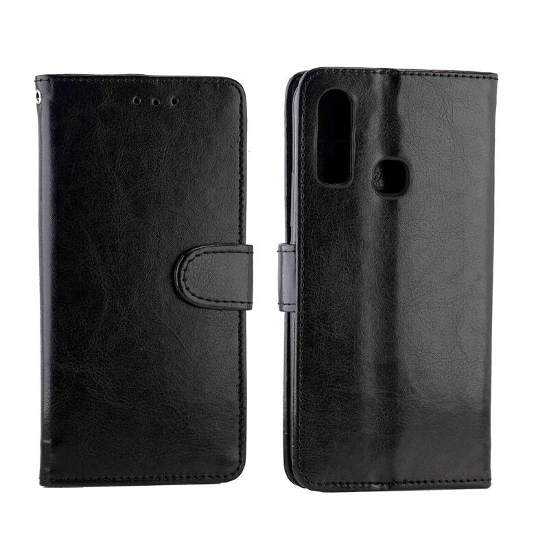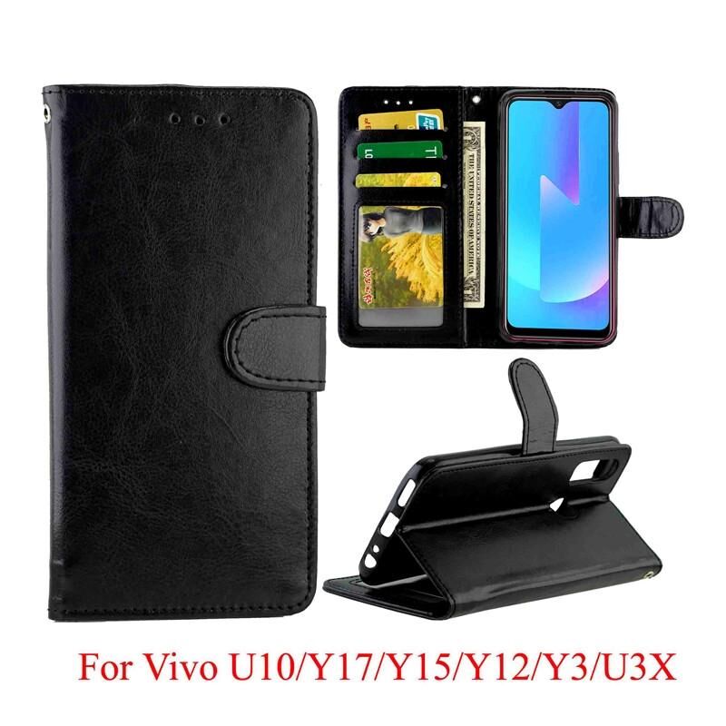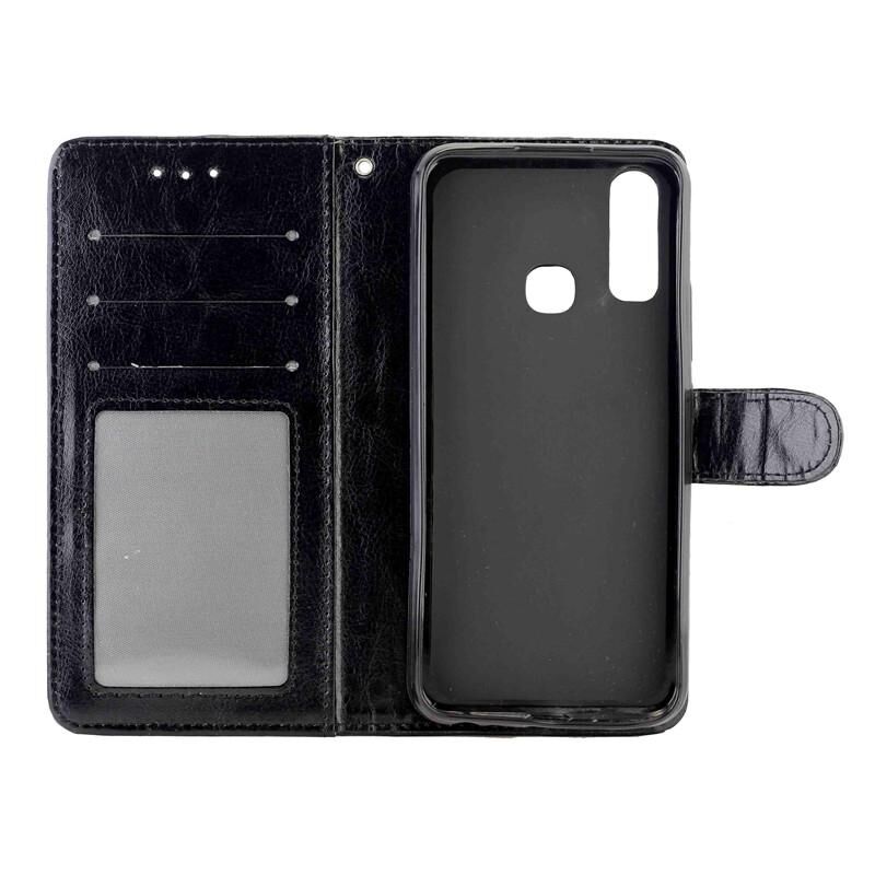 Θήκη δέρματος οριζόντιας αναδίπλωσης με υφή Crazy Horse για Vivo U10 / Y17 με βάση & υποδοχές καρτών & πορτοφόλι & κορνίζα φωτογραφιών (Μαύρο)