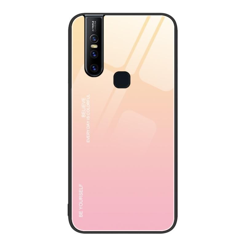 Για το vivo V15 Κλιμακωτό χρώμα γυάλινη θήκη (Κίτρινο Ροζ)