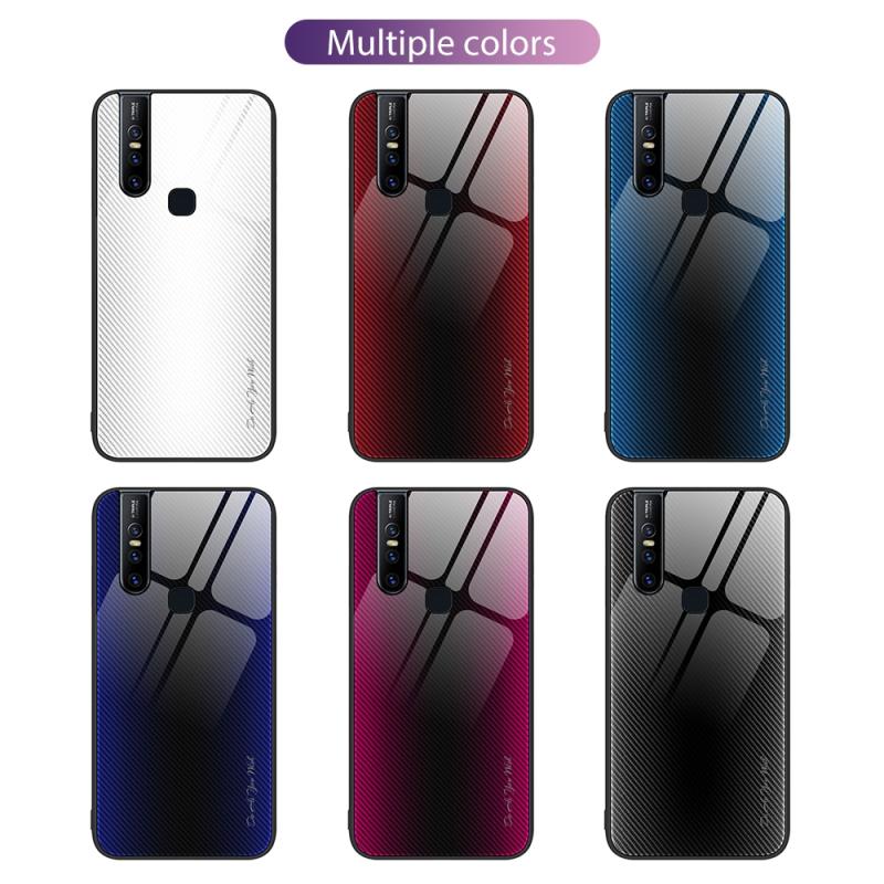 Θήκη τηλεφώνου TPU με γυαλί διαβαθμισμένης υφής για vivo V15 (Σκούρο μπλε)