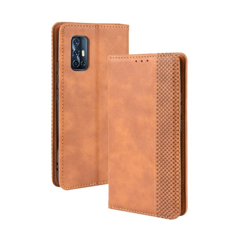Θήκη δέρματος οριζόντιας αναδίπλωσης με μαγνητικό κούμπωμα, υφή Crazy Horse Retro για vivo V17 (Ινδία) με βάση στήριξης, θήκες καρτών & κορνίζα φωτογραφιών (Καφέ)