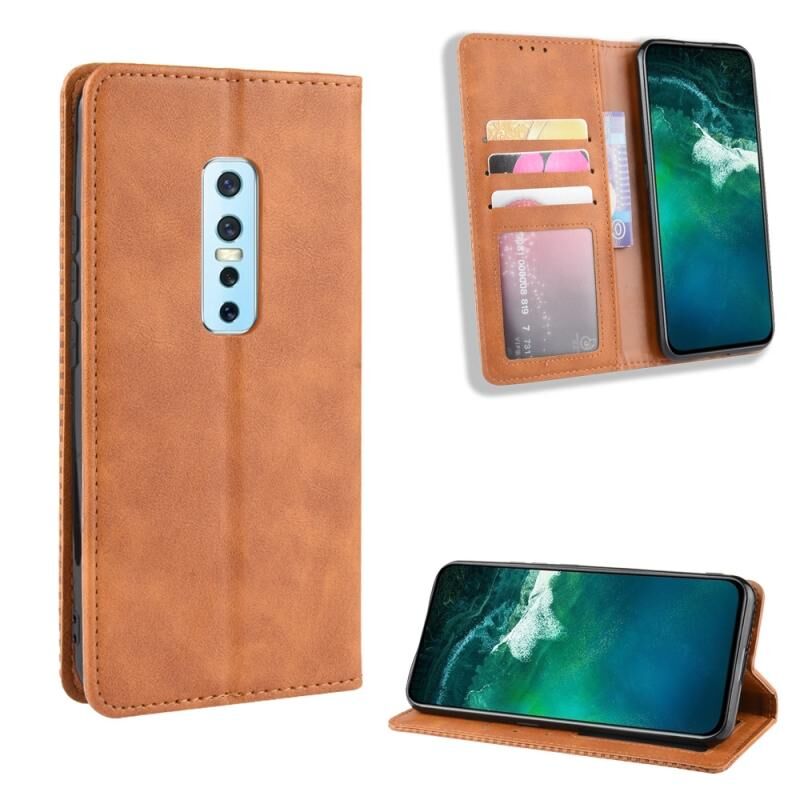 Θήκη δέρματος οριζόντιας αναδίπλωσης με μαγνητικό κούμπωμα, υφή Crazy Horse Retro για Vivo V17 Pro, με βάση στήριξης & υποδοχές καρτών & κορνίζα φωτογραφιών (Μαύρο)