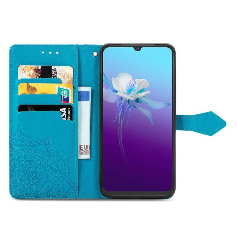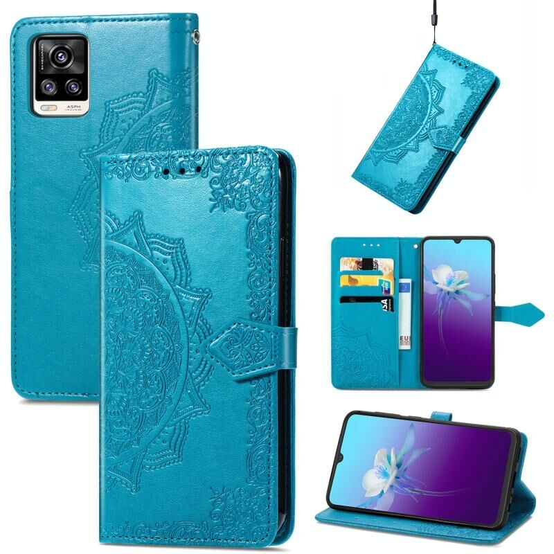 Για το vivo V20 2021 Mandala ανάγλυφο μοτίβο οριζόντια Flip δερμάτινη θήκη με κάτοχο & υποδοχές για κάρτες & πορτοφόλι & κορδόνι (μπλε)