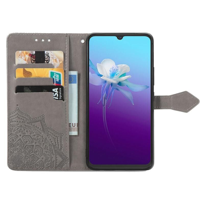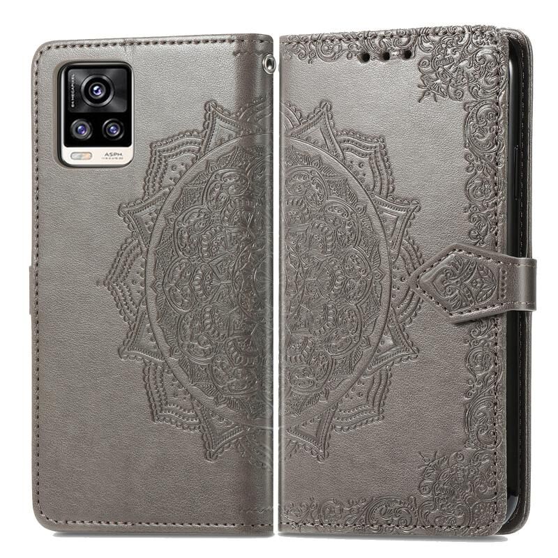 Για vivo V20 2021 Mandala ανάγλυφο μοτίβο οριζόντια Flip δερμάτινη θήκη με κάτοχο & υποδοχές για κάρτες & πορτοφόλι & κορδόνι (Γκρι)