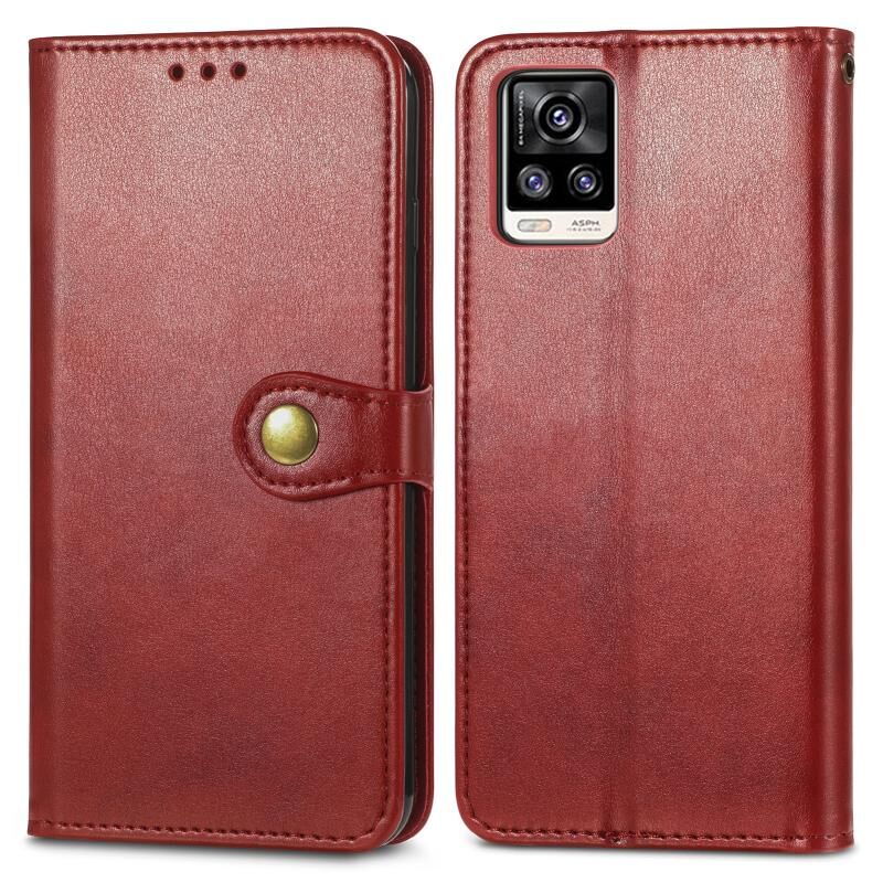 Για vivo V20 2021 Αμιγές χρώμα δέρμα αγκράφα υπόθεση τηλεφώνου (Κόκκινο)