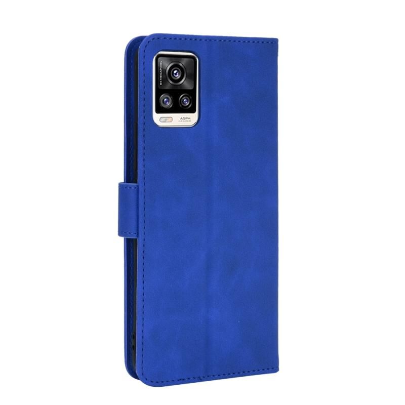 Για το vivo V20 4G (ινδική έκδοση) Αμιγές χρώμα δέρμα αίσθηση μαγνητική πόρπη οριζόντια Flip μοσχάρι υφή PU δέρμα υπόθεση με κάτοχο & υποδοχές καρτών & πορτοφόλι (Μπλε)