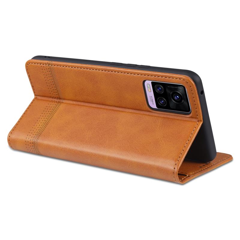 Θήκη δέρματος οριζόντιας αναδίπλωσης με μαγνητικό ανάγλυφο μοσχαρίσιου δέρματος για vivo V20 Pro / S7 ZNS με υποδοχές καρτών & βάση & πορτοφόλι (Ανοιχτό Καφέ) (AZNS)