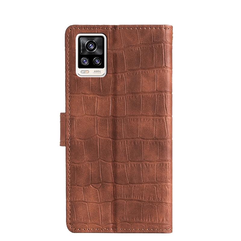 Θήκη για vivo V20 με υφή δέρματος κροκόδειλου, μαγνητικό κούμπωμα, οριζόντια αναδιπλούμενη από δερματίνη PU με βάση & υποδοχές καρτών & πορτοφόλι (Καφέ)