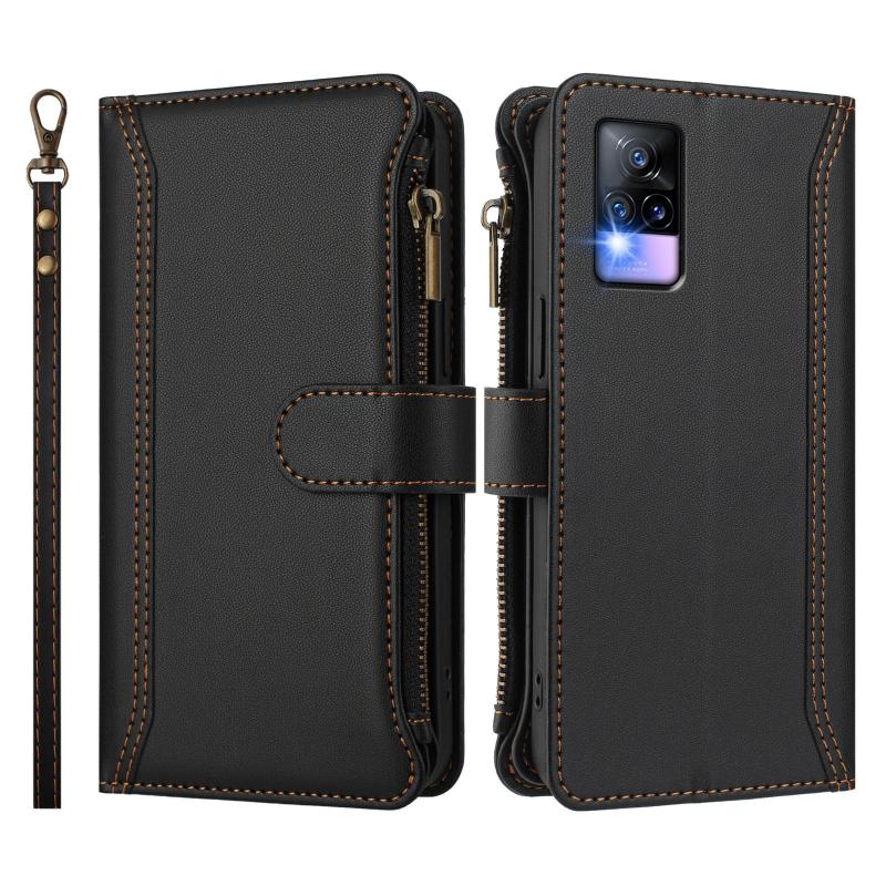 For vivo V20 / V21E 4G / Y73 2021 Magnetic Closure 9 Card Slots Zipper Leather Case with Hand Strap(Black)