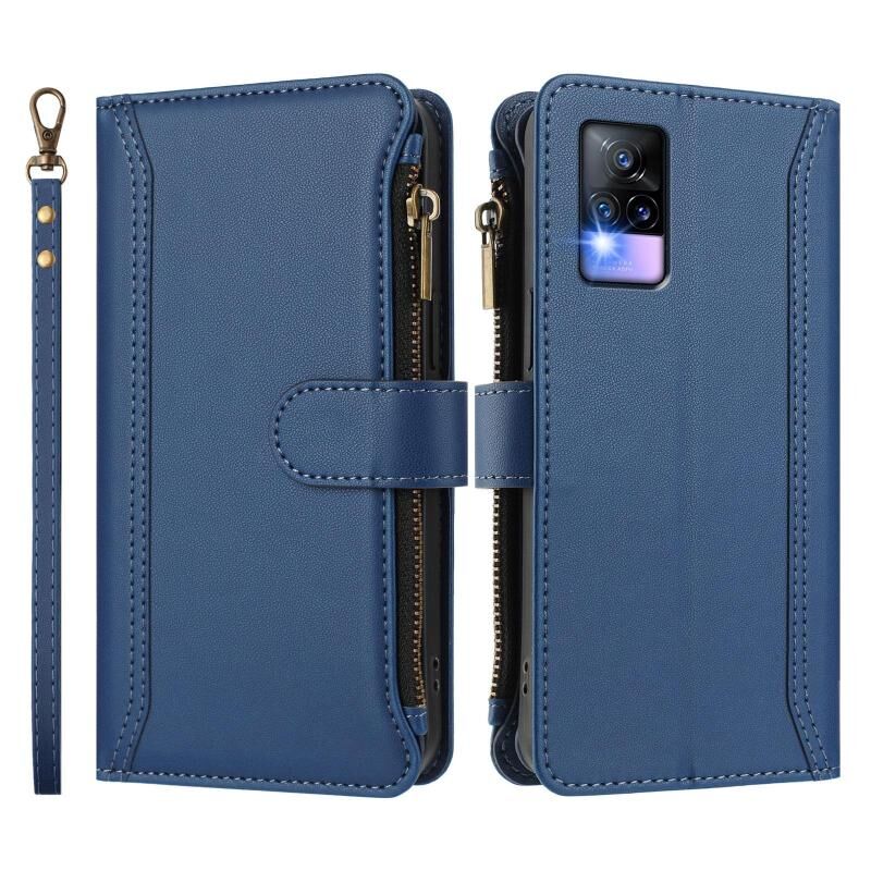 Για vivo V20 / V21E 4G / Y73 2021 Μαγνητικό Κλείσιμο 9 Θήκες Κάρτας Δερμάτινη Θήκη με Φερμουάρ και Λουρί Χεριού (Σκούρο μπλε)