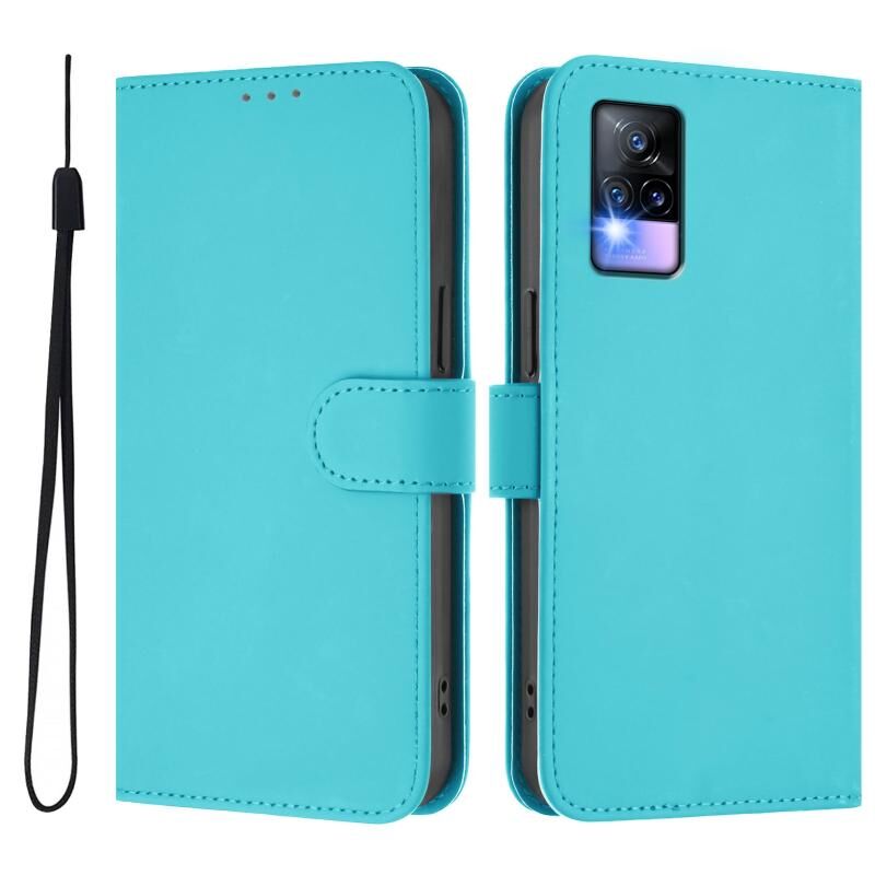 Θήκη τηλεφώνου από δέρμα με συμπαγή χρώματα και αίσθηση δέρματος για vivo V20 / V21E 4G / Y73 2021 με κορδόνι (Γαλάζια Λίμνης)