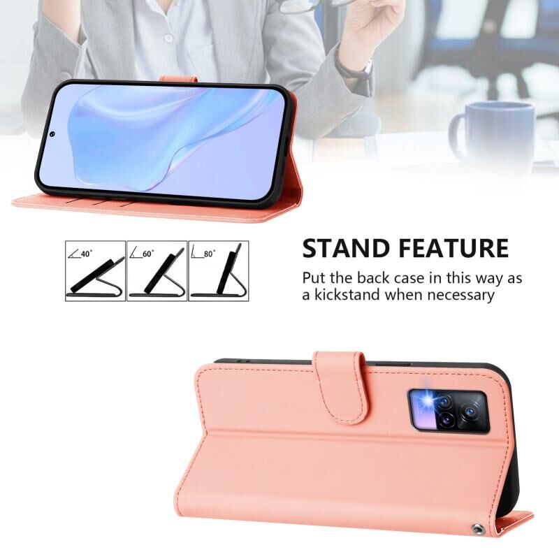 Θήκη τηλεφώνου από δέρμα με συμπαγή χρώματα και αίσθηση δέρματος για vivo V20 / V21E 4G / Y73 2021 με κορδόνι (ρόζ)