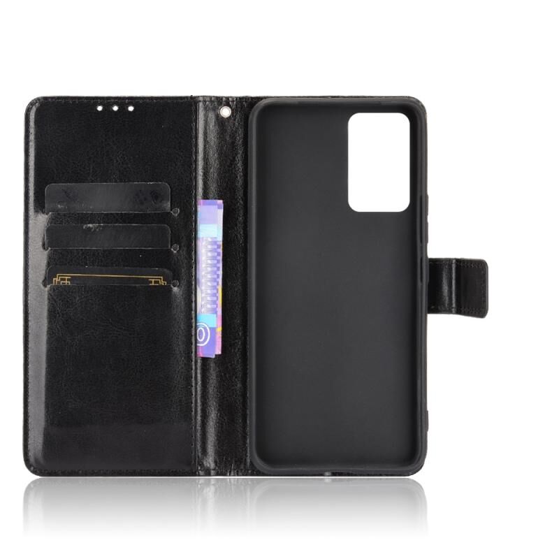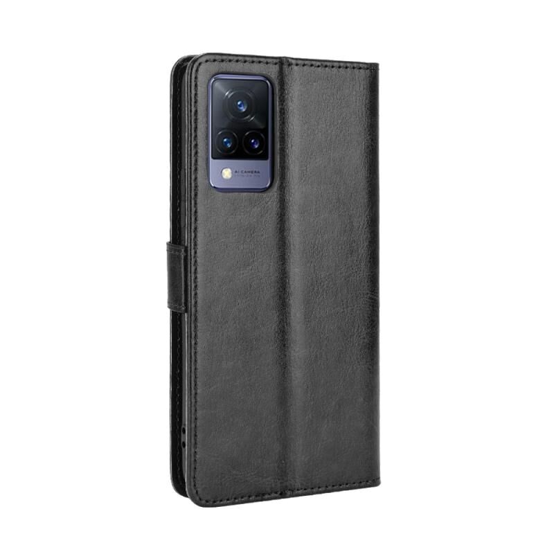 Για vivo V21 4G / 5G Crazy Horse Υφή οριζόντια Flip δερμάτινη θήκη με θήκη & υποδοχές καρτών & κορδόνι (μαύρο)