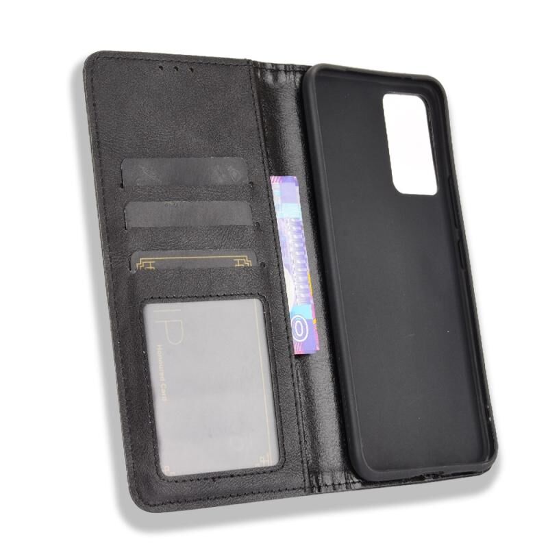 Για vivo V21 5G / 4G Μαγνητική πόρπη Ρετρό Crazy Horse Υφή Οριζόντια Flip δερμάτινη θήκη με υποδοχή & υποδοχές καρτών & πλαίσιο φωτογραφιών (μαύρο)