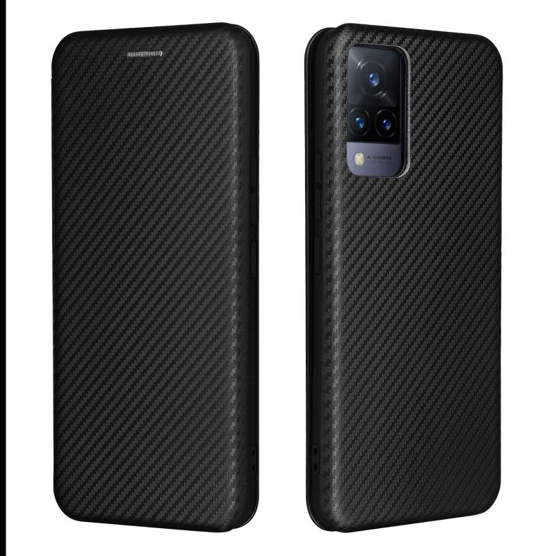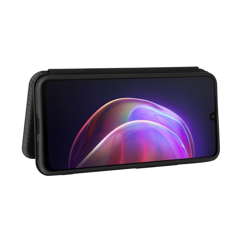 Θήκη για vivo V21 με υφή ανθρακονημάτων, οριζόντια, αναδιπλούμενη, από TPU + PC + Δερματίνη PU με θήκη για κάρτες (Μαύρο)