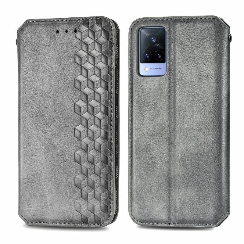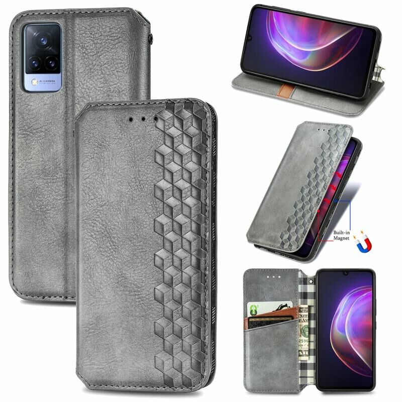 Για το vivo V21 Cubic Grid Pressed Horizontal Flip Μαγνητική PU δερμάτινη θήκη με θήκη για κάρτες & υποδοχές & πορτοφόλι (γκρι)