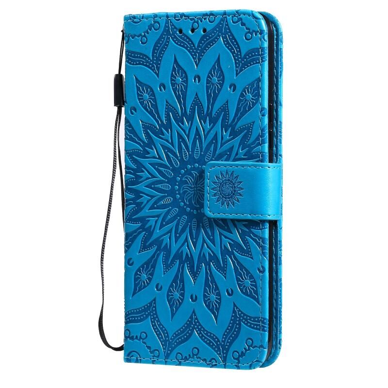 Για vivo V21 Sun ανάγλυφο μοτίβο οριζόντια Flip δερμάτινη θήκη με υποδοχή για κάρτες & κάτοχος & πορτοφόλι & κορδόνι (μπλε)
