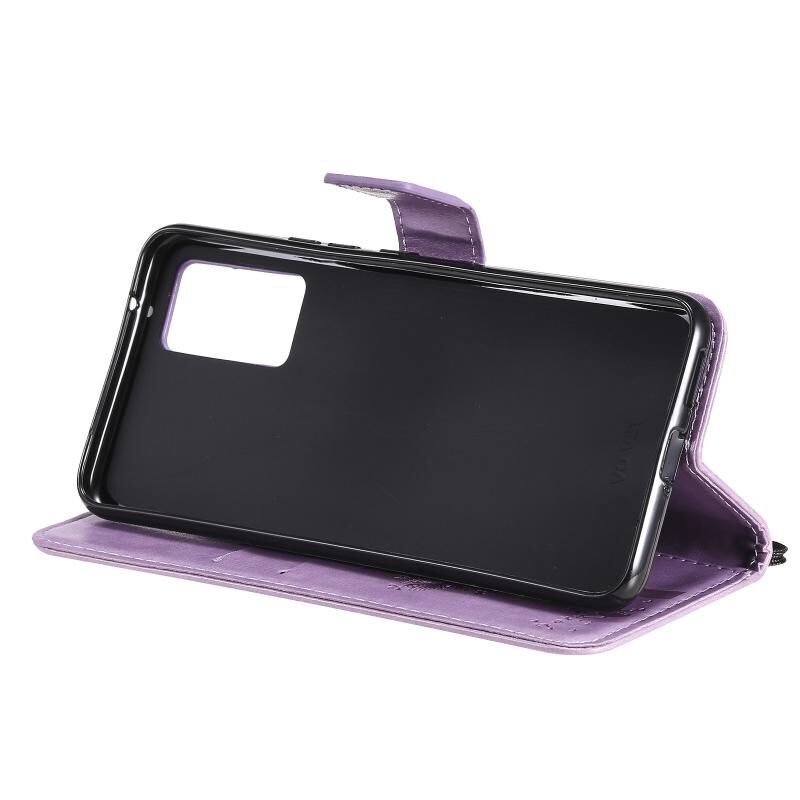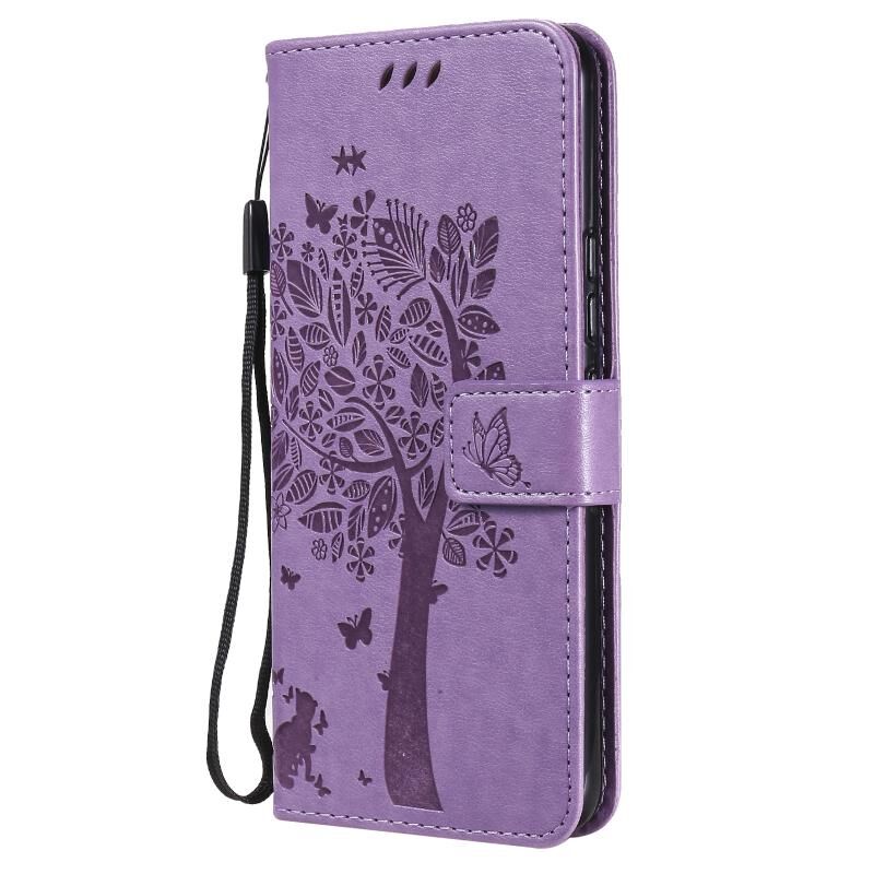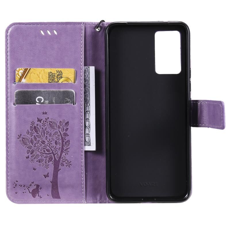 Θήκη για vivo V21 με ανάγλυφο σχέδιο Δέντρου & Γάτας, οριζόντια, από δερματίνη PU με βάση στήριξης, θήκες για κάρτες, πορτοφόλι & λουρί (Πράσινο)