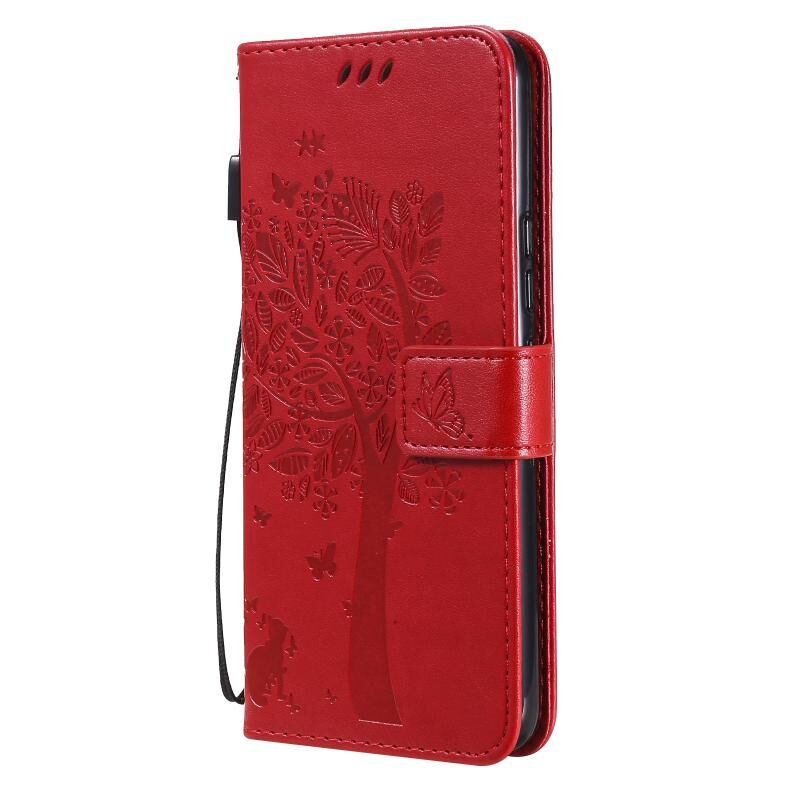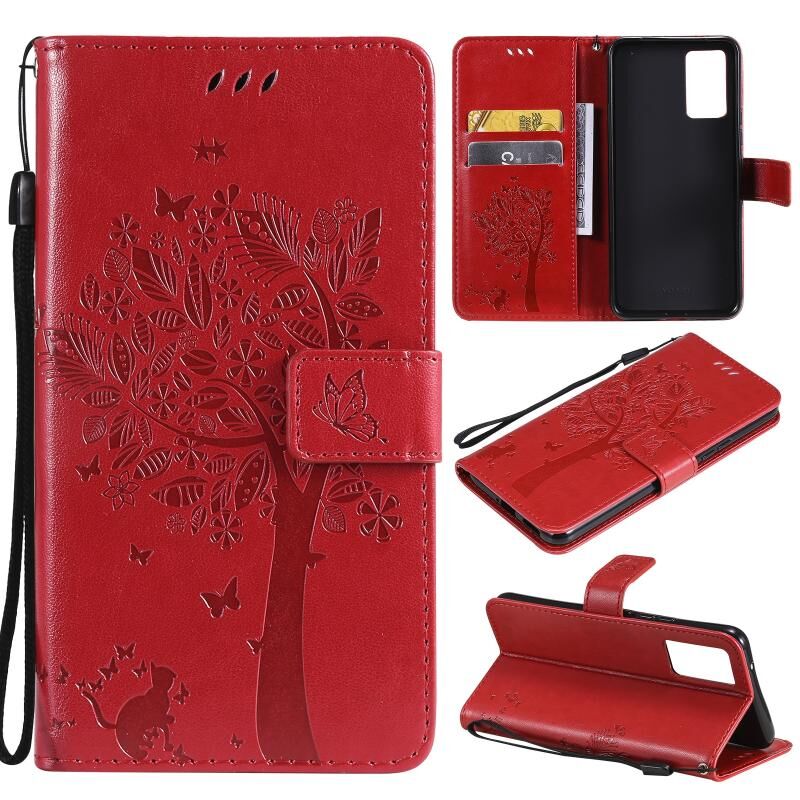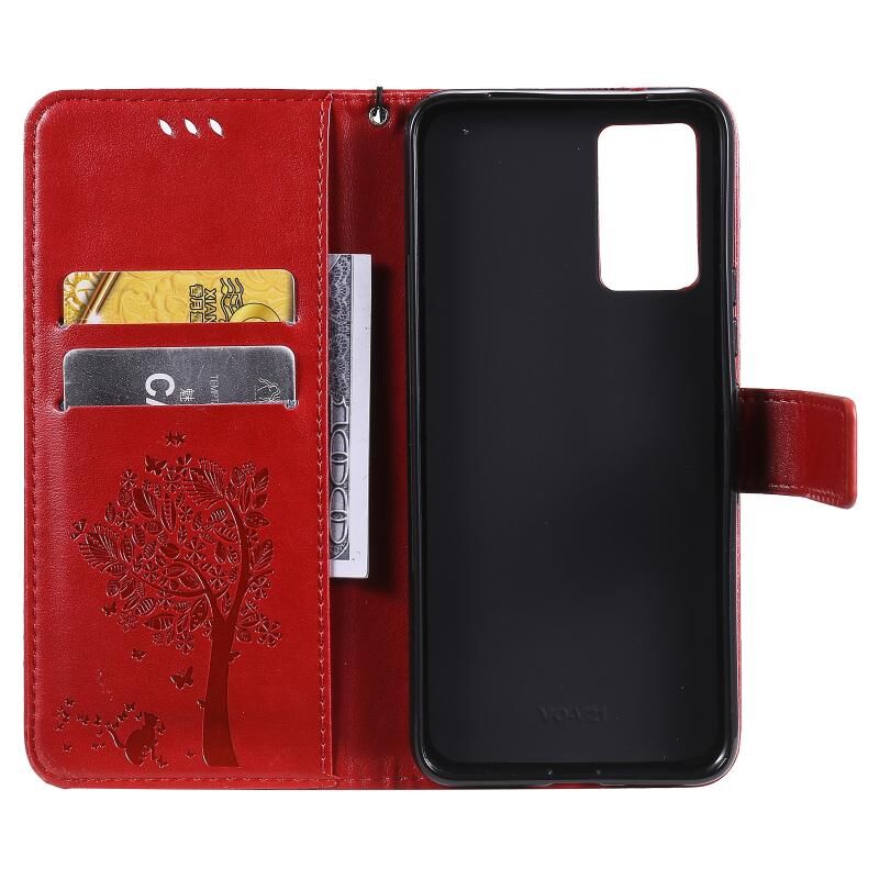 Θήκη για vivo V21 με ανάγλυφο σχέδιο Δέντρου & Γάτας, οριζόντια, από δερματίνη PU με βάση στήριξης, θήκες για κάρτες, πορτοφόλι & λουρί (Πράσινο)