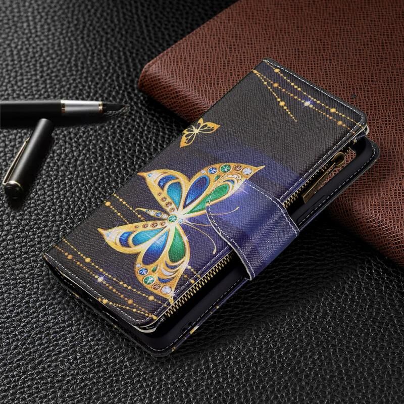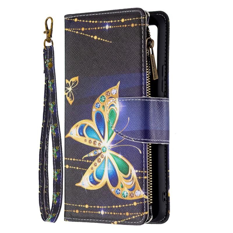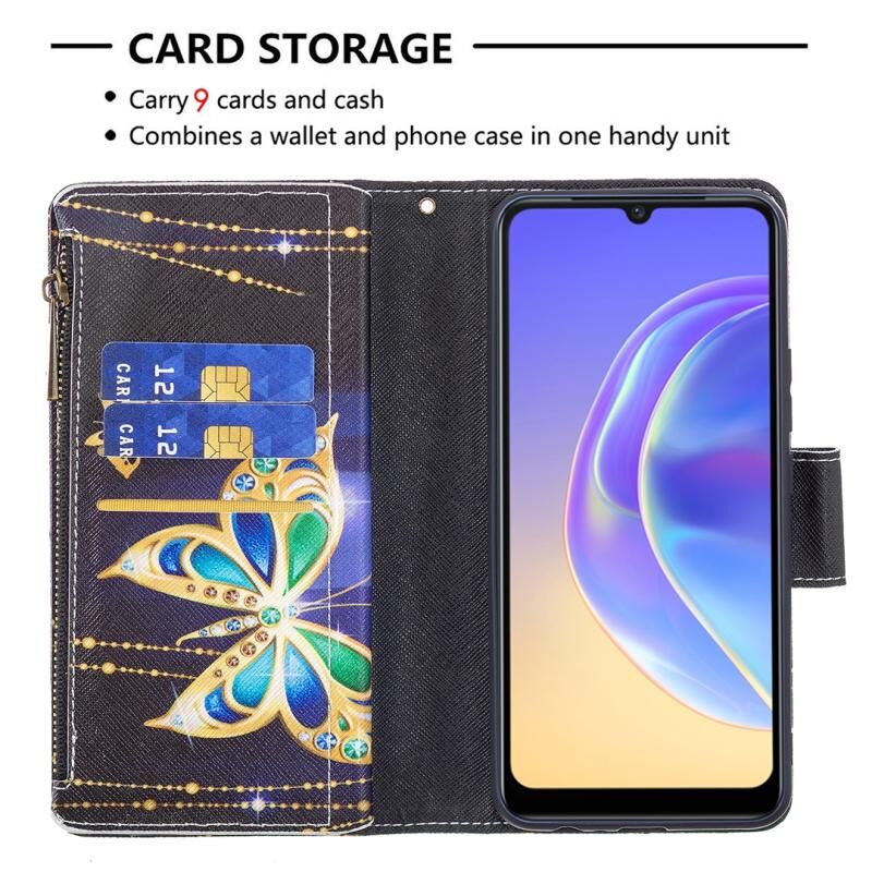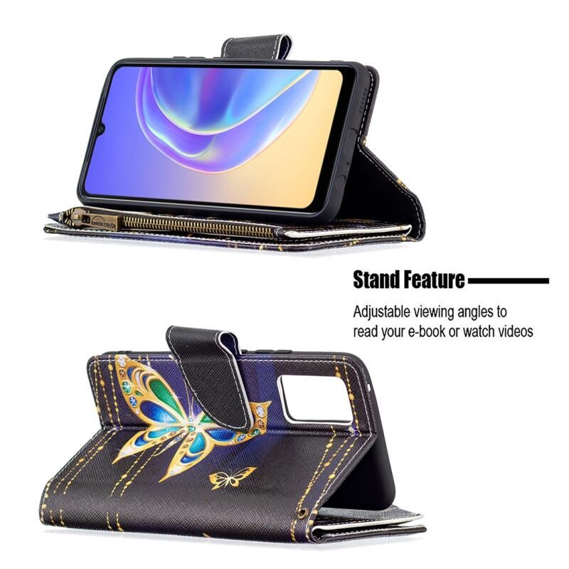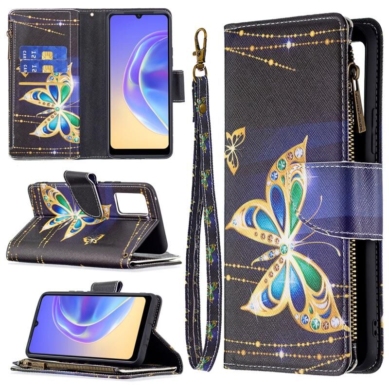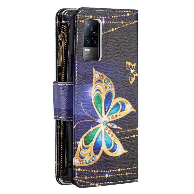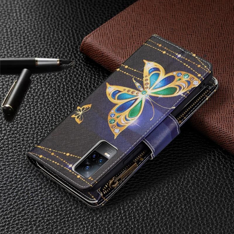 Θήκη δέρματος οριζόντιας αναδίπλωσης με φερμουάρ και σχέδιο ζωγραφικής για vivo V21e 4G, με βάση για κάρτες και πορτοφόλι (Μεγάλη Πεταλούδα)