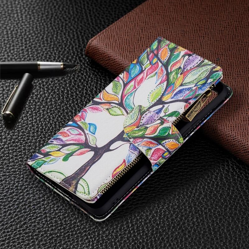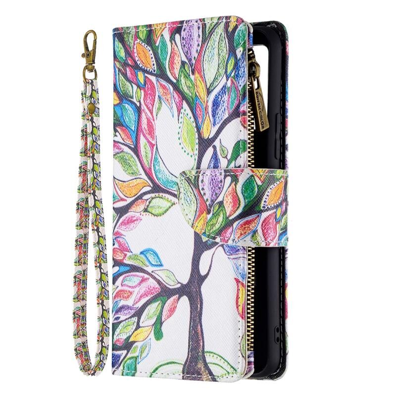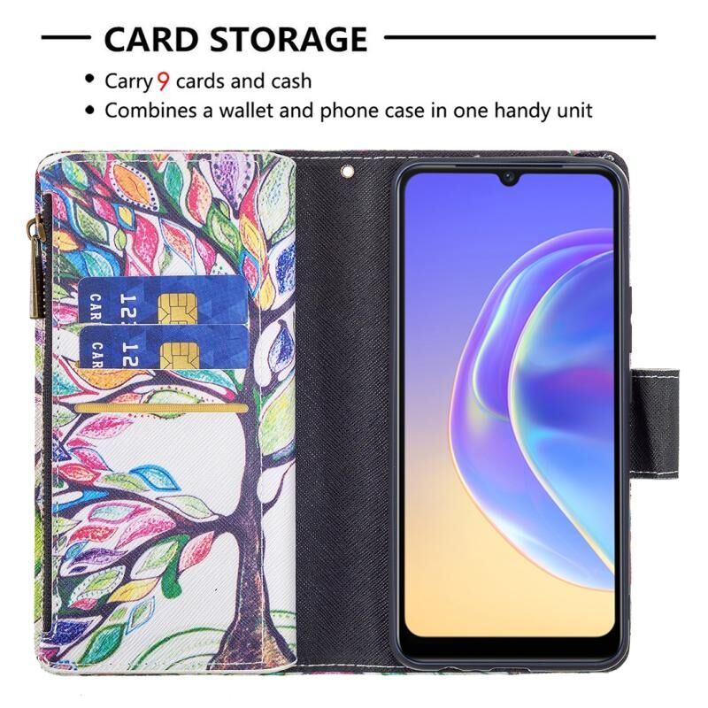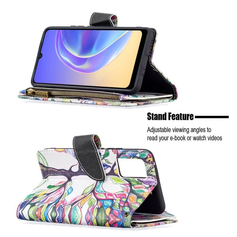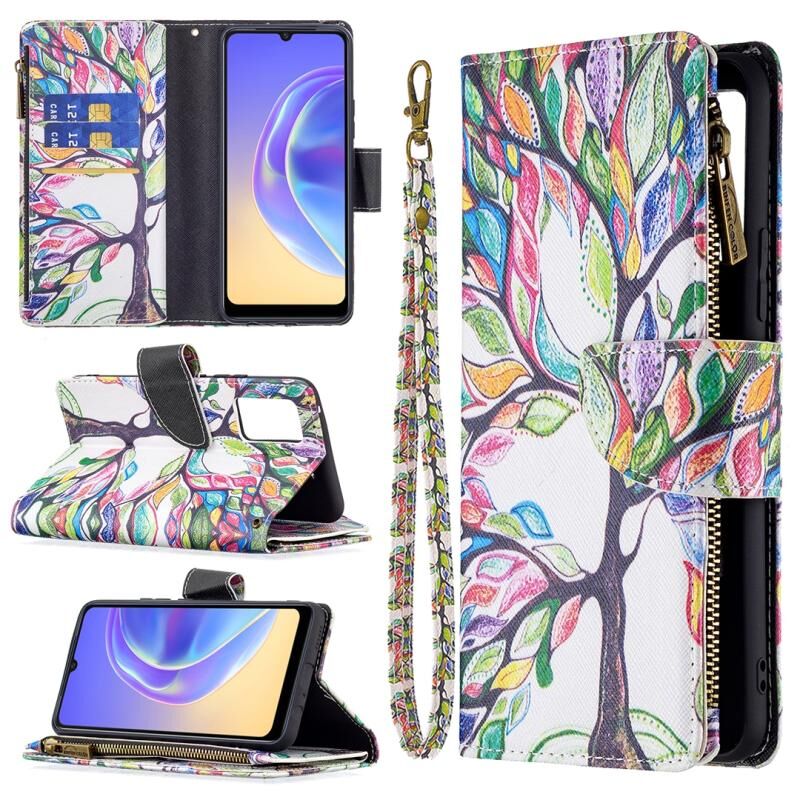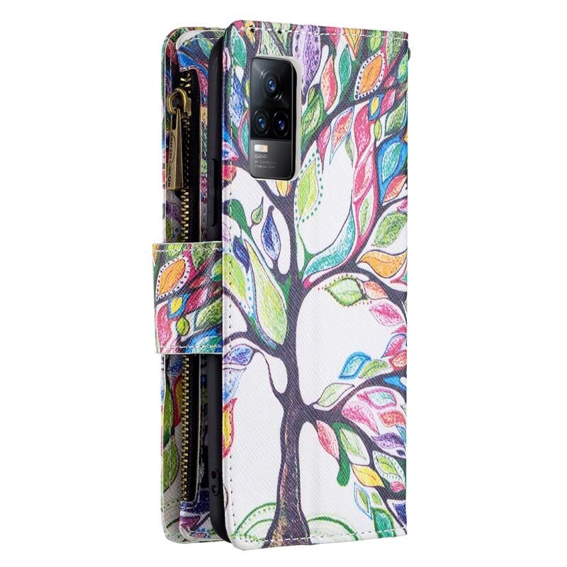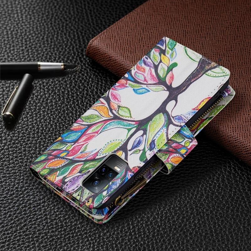 Θήκη δέρματος οριζόντιας αναδίπλωσης με φερμουάρ και σχέδιο ζωγραφικής για vivo V21e 4G (Μεγάλο Δέντρο) με βάση για κάρτες και πορτοφόλι.