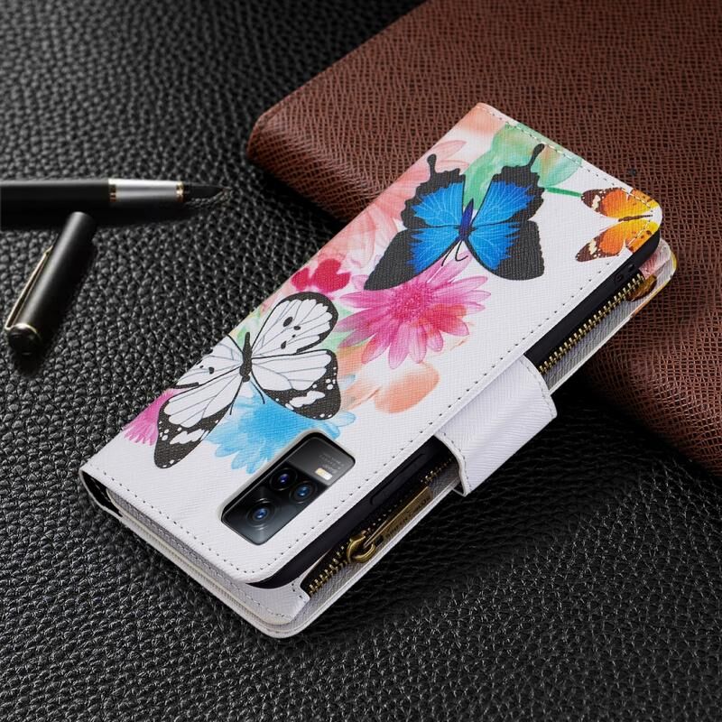 Θήκη δέρματος οριζόντιας αναδίπλωσης με φερμουάρ και σχέδιο ζωγραφικής για vivo V21e 4G με βάση για κάρτες και πορτοφόλι (Δύο Πεταλούδες)