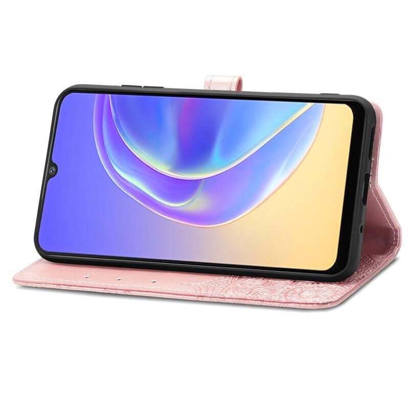 Για vivo V21e 4G Mandala λουλούδι ανάγλυφο οριζόντια Flip δερμάτινη θήκη με κάτοχο & τρεις υποδοχές για κάρτες & πορτοφόλι & κορδόνι (Ροζ χρυσός)