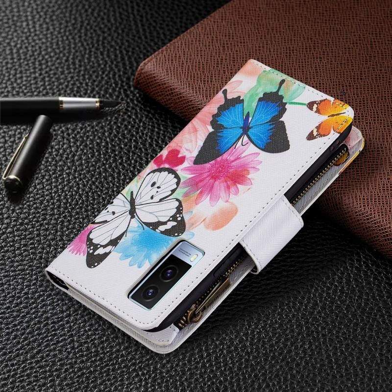 Θήκη δέρματος οριζόντιας αναδίπλωσης με φερμουάρ και σχέδιο ζωγραφικής για vivo V21e 5G με βάση για κάρτες και πορτοφόλι (Δύο Πεταλούδες)