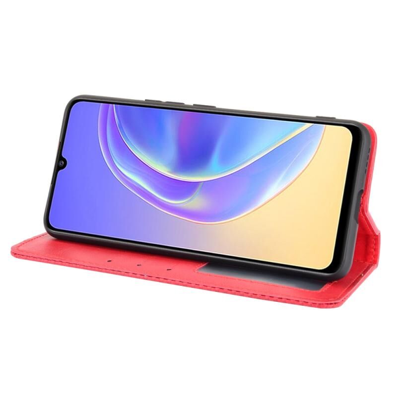 Για το vivo V21e 5G Μαγνητική πόρπη Ρετρό Crazy Horse Υφή Οριζόντια Flip Δερμάτινη θήκη με θήκη & υποδοχές καρτών & πλαίσιο φωτογραφιών (κόκκινο)