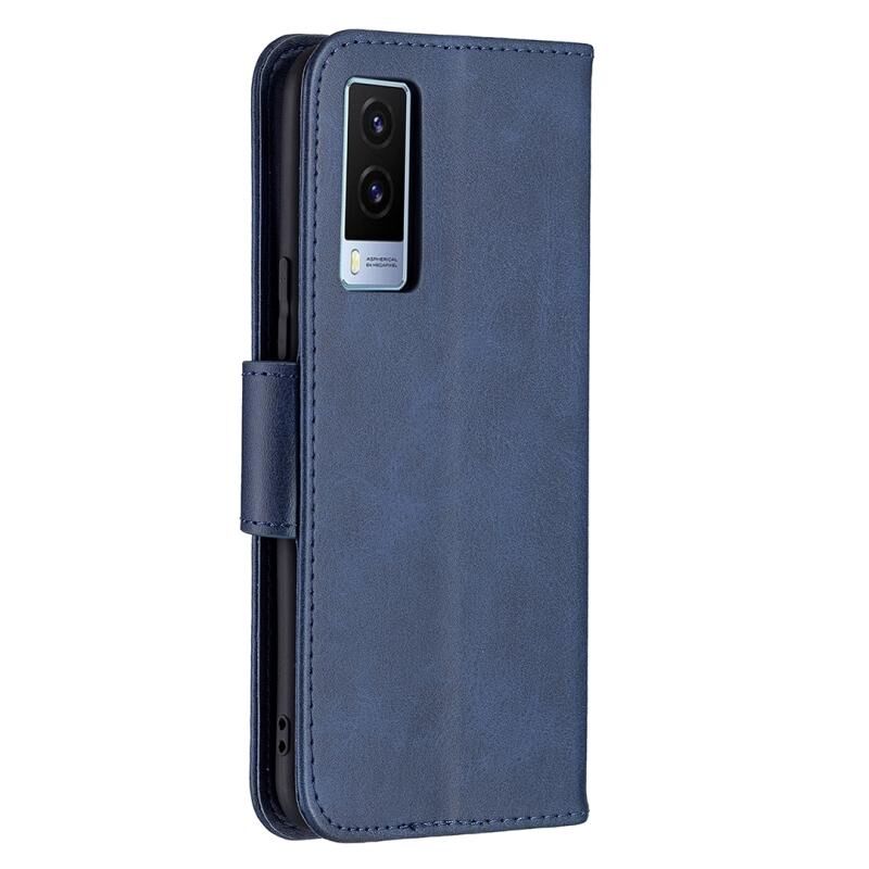 Για vivo V21e 5G Retro Lambskin υφή καθαρό χρώμα οριζόντια Flip PU δέρμα υπόθεση με κάτοχο & υποδοχές για κάρτες & πορτοφόλι & κορδόνι (μπλε)
