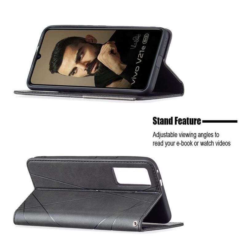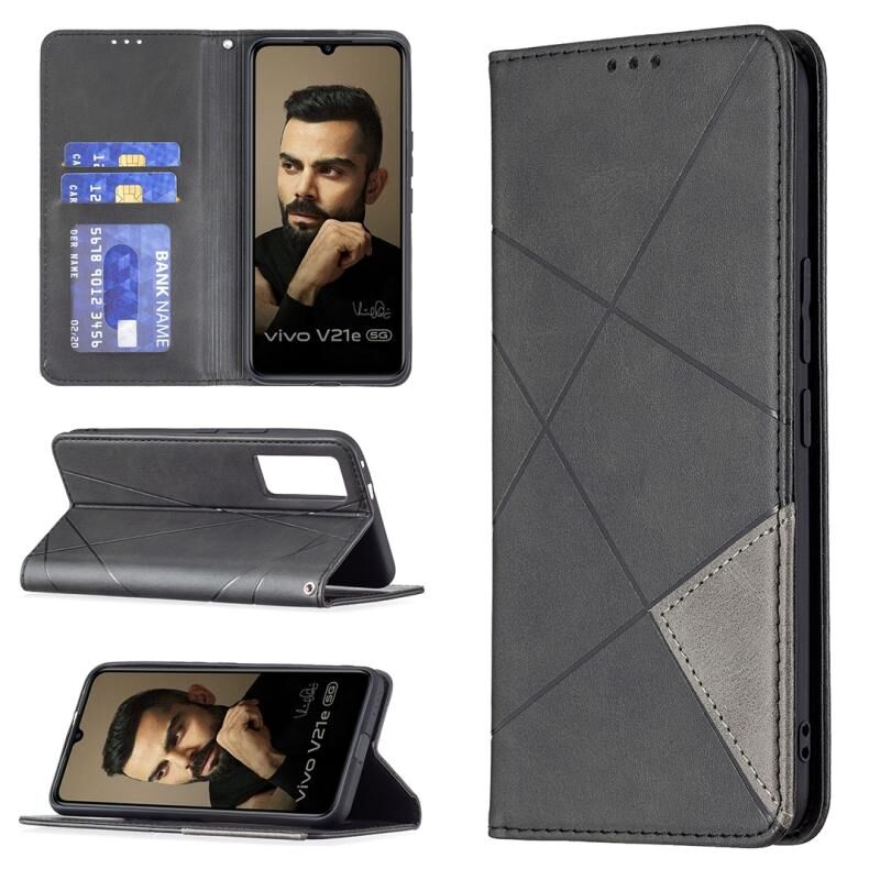 Για το vivo V21e 5G Rhombus Υφή Οριζόντια Flip μαγνητική δερμάτινη θήκη με υποδοχή & υποδοχές καρτών (μαύρο)