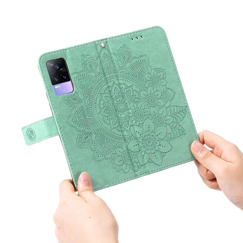 Για vivo V21e 7-πέταλα λουλούδια ανάγλυφο μοτίβο οριζόντια Flip PU δέρμα υπόθεση με κάτοχο & υποδοχές για κάρτες & πορτοφόλι & πλαίσιο φωτογραφιών (πράσινο)