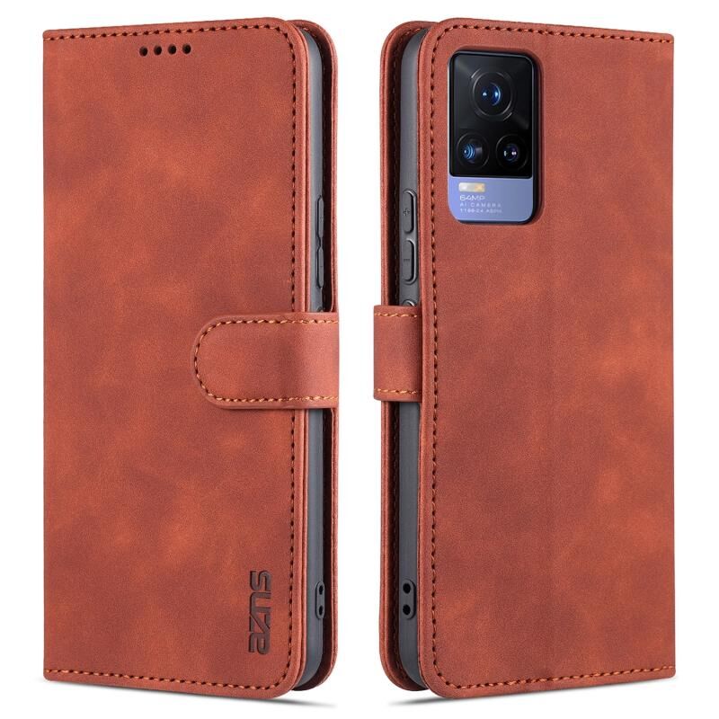 Για το vivo V21e / Y73 2021 AZNS Skin Feel Calf Texture Horizontal Flip Leather Case με υποδοχές για κάρτες & κάτοχος & πορτοφόλι (καφέ) (AZNS)
