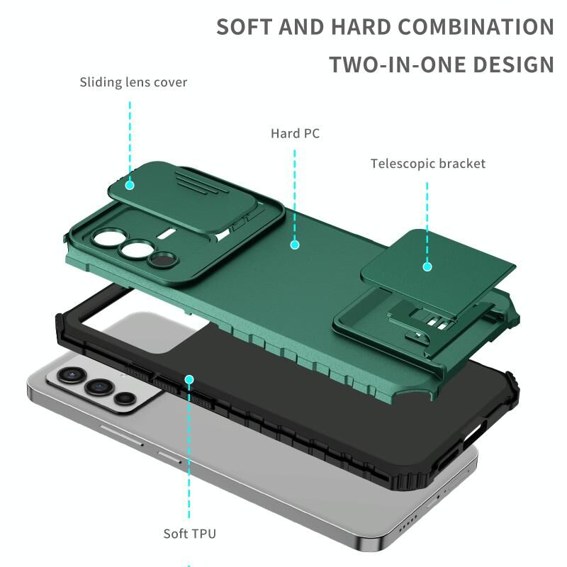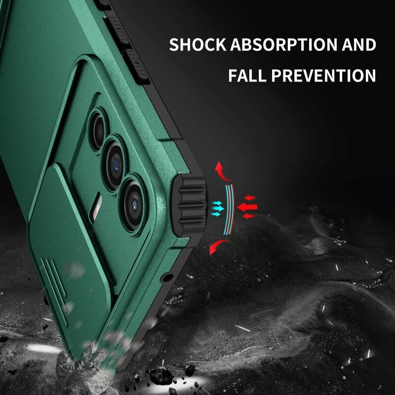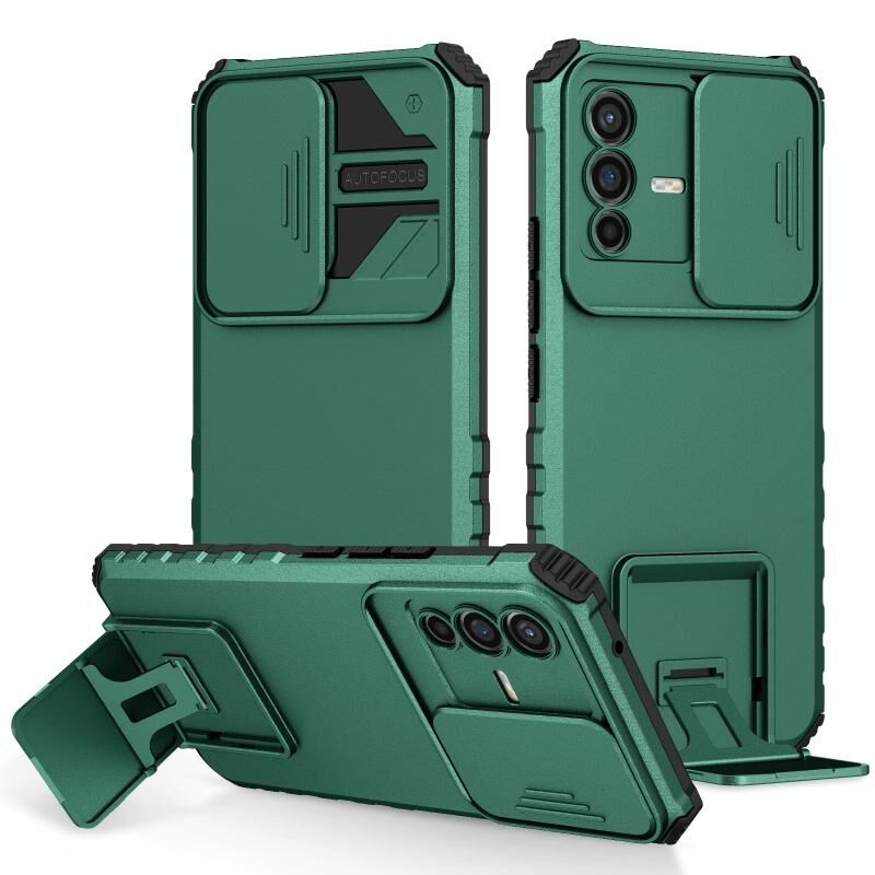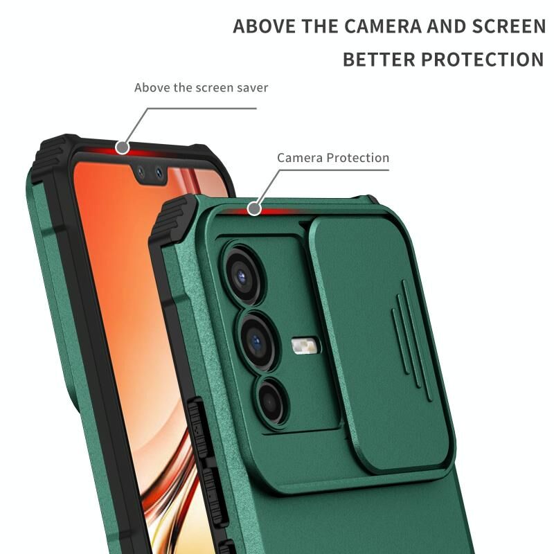 Για vivo V23 5G Στερεοσκοπική κάτοχος συρόμενη Camshield υπόθεση τηλεφώνου (Σκούρο πράσινο)