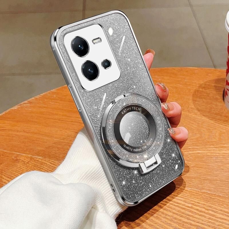 Θήκη τηλεφώνου TPU με στρογγυλό στήριγμα, γυαλιστερό διαβαθμισμένο χρώμα για vivo V25 5G (Ασημί)