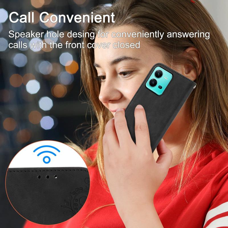 Θήκη τηλεφώνου από δέρμα με ανάγλυφα λουλούδια και υφή δέρματος για vivo V25 5G (Μαύρο)