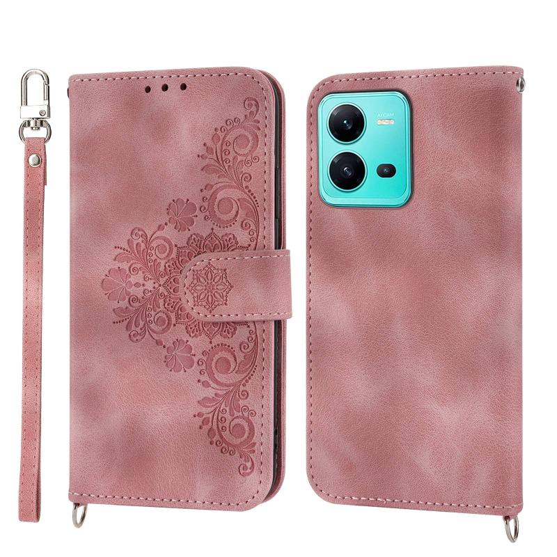 Θήκη τηλεφώνου από δέρμα με ανάγλυφα λουλούδια και υφή δέρματος για vivo V25 5G (Καφέ)