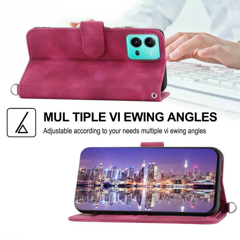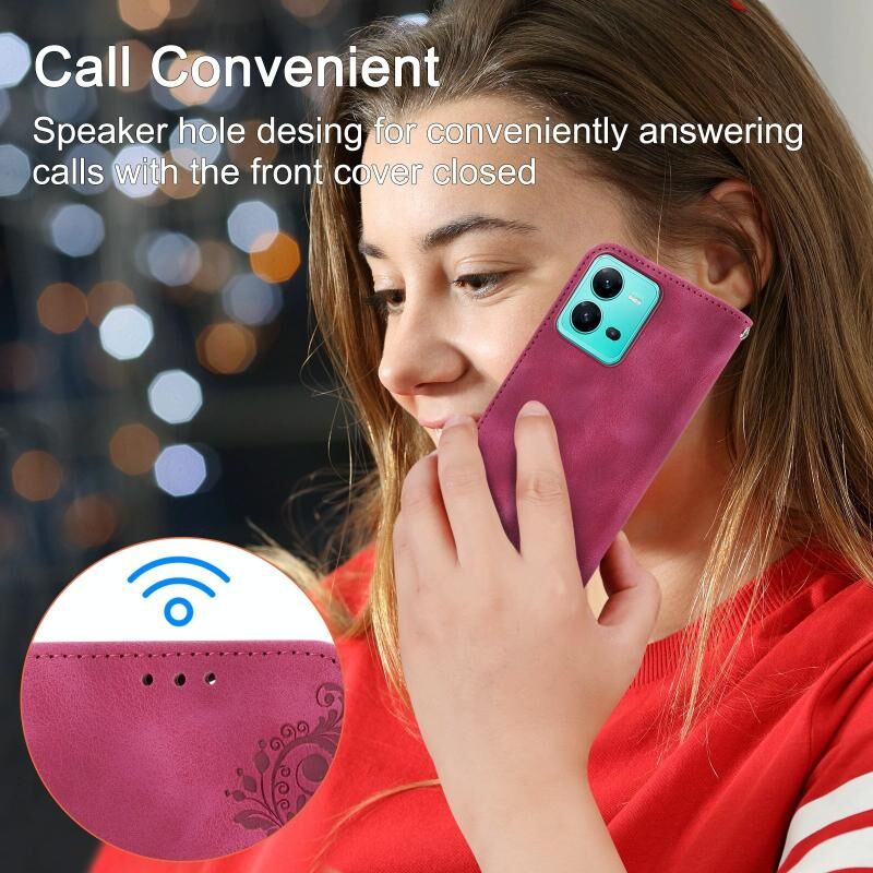 Θήκη τηλεφώνου από δέρμα με ανάγλυφα λουλούδια και υφή δέρματος για vivo V25 5G (Καφέ)