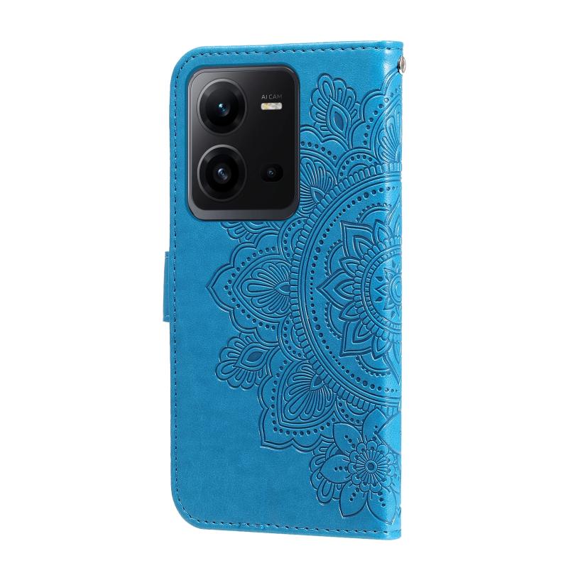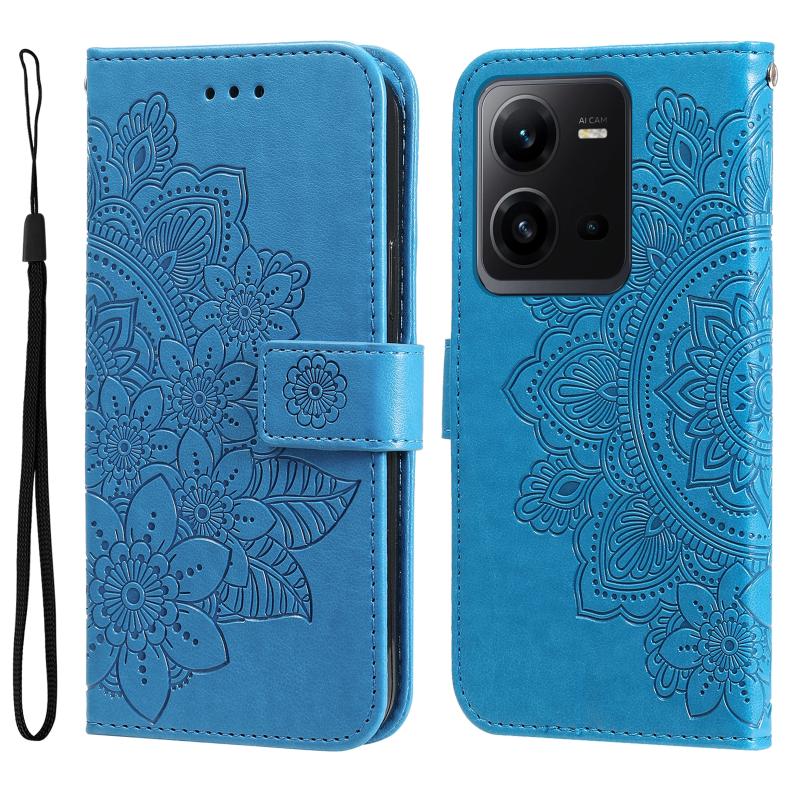 For vivo V25 5G/V25e 4G 7-petal Flowers Embossing Leather Phone Case(Blue)