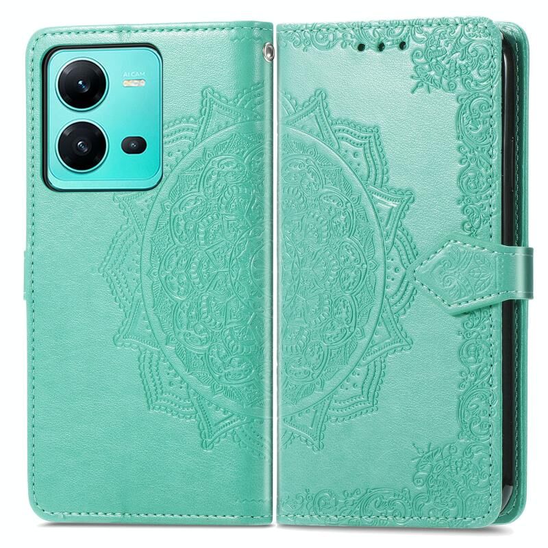 Για vivo V25 Mandala λουλούδι ανάγλυφο δερμάτινη θήκη τηλεφώνου (πράσινο)