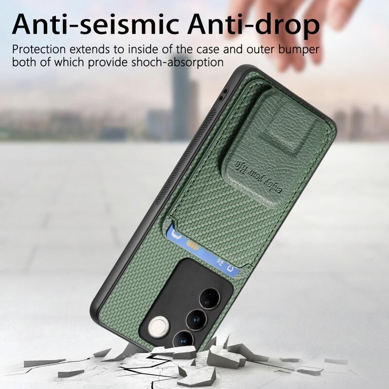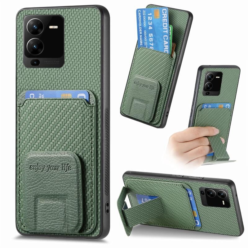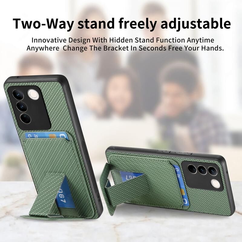 Θήκη τηλεφώνου για vivo V25 Pro Carbon Fiber Card Bag με πτυσσόμενη βάση (πράσινο)
