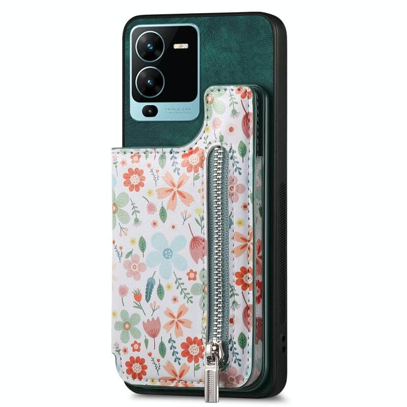 Για vivo V25 Pro Ρετρό ζωγραφισμένο φερμουάρ πορτοφόλι πίσω υπόθεση τηλεφώνου (πράσινο)