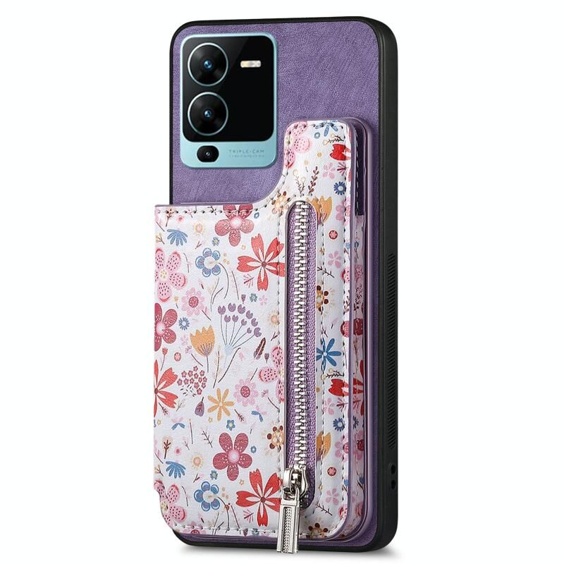 Για vivo V25 Pro Ρετρό ζωγραφισμένο φερμουάρ πορτοφόλι πίσω υπόθεση τηλεφώνου (μωβ)
