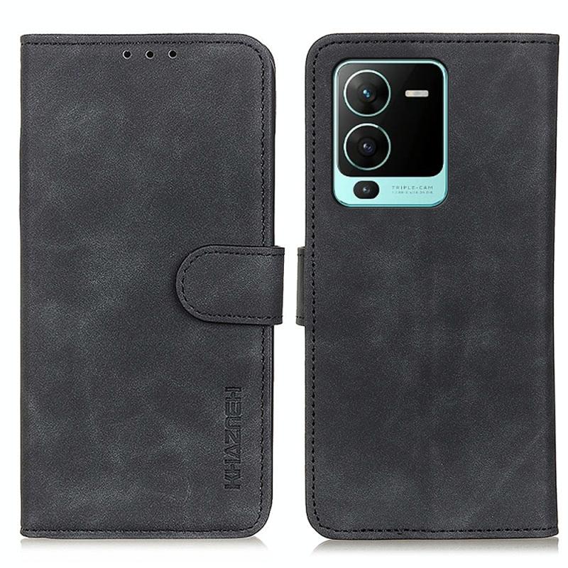 Θήκη τηλεφώνου από δέρμα με οριζόντιο άνοιγμα και ανάγλυφη υφή retro KHAZNEH για vivo V25 Pro/S15 Pro (Μαύρο)