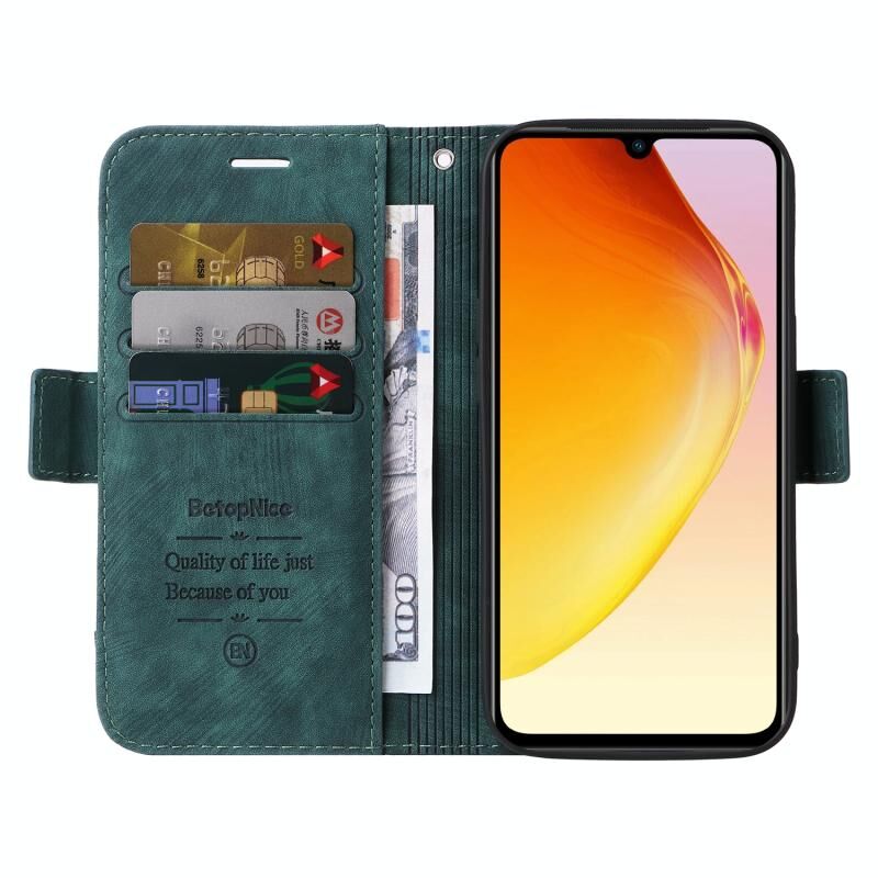 Για vivo V25 / V25e 4G Global Θήκη τηλεφώνου από δέρμα με διπλή αγκράφα BETOPNICE (Μωβ) (πράσινο)