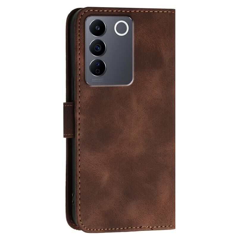 Θήκη τηλεφώνου δερμάτινη με ανάγλυφο σχέδιο πεταλούδας και κορδόνι για vivo V27 5G Global Grid (Καφέ)