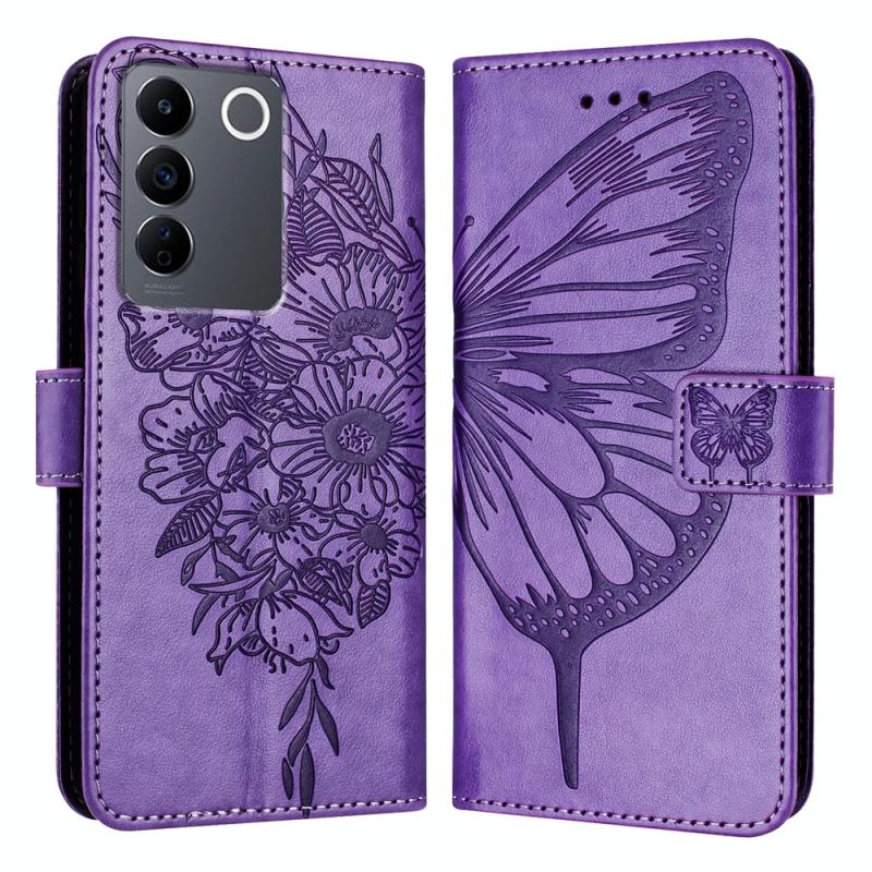For vivo V27 5G/V27 Pro 5G Global Embossed Butterfly Leather Phone Case(Light Purple)